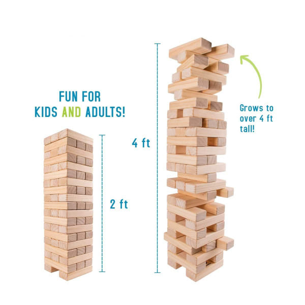 If you like Jenga, you and your party guests will have a blast stacking these wooden blocks to over 4ft tall. Will it come crashing down on your turn or will your opponent be the one to tip the tower. This giant-sized game is tons of fun for kids and adults. Be careful, we heard Grandma holds the record for the most wins.