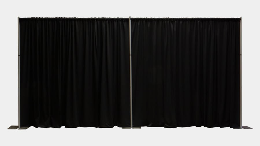 1 7' 6" H X 10' W pipe and drape frame with black curtain