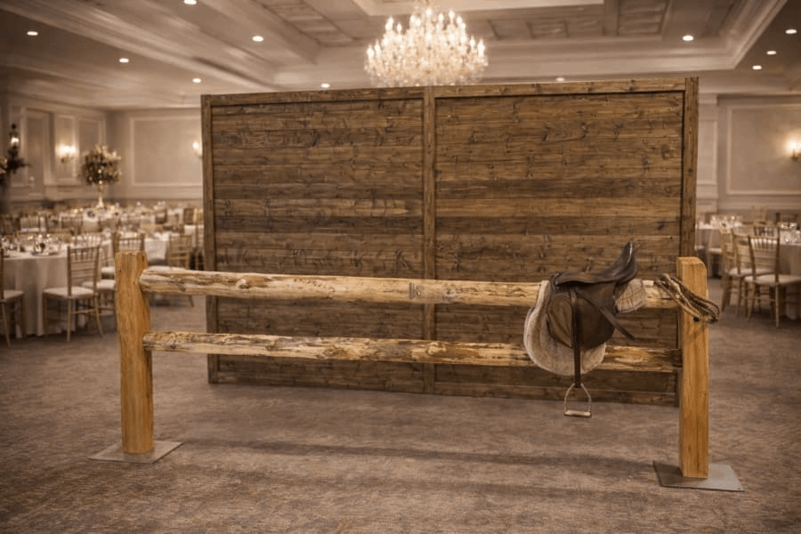 Our 12' Wood Feature Wall stands 7'6" tall and delivers dramatic visual impact for upscale western themes, corporate events, and refined wedding receptions.