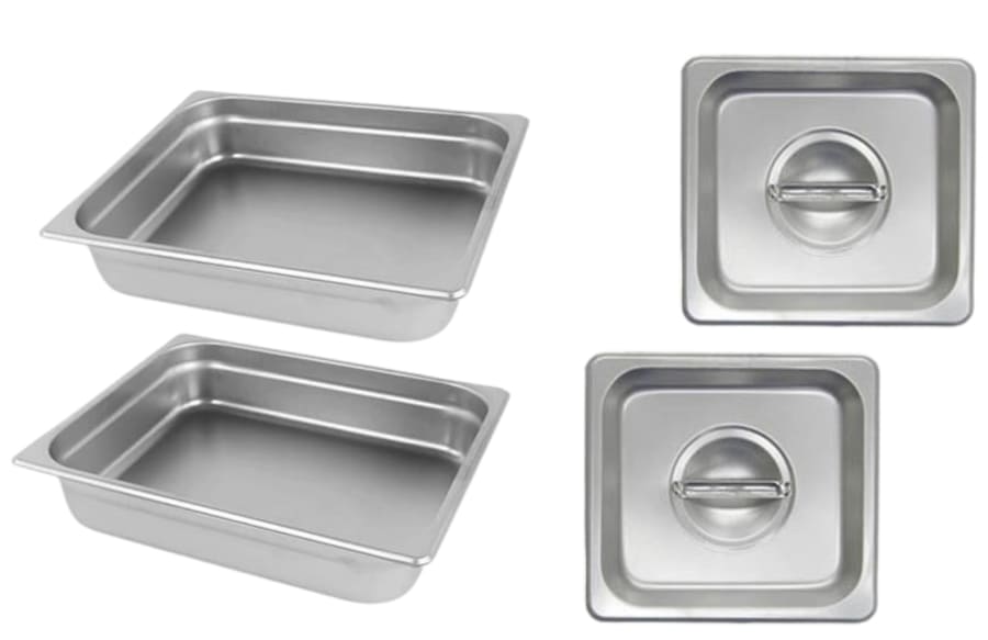 1 full size electric warmer, 2 1/2 size pans and 2 lids. Serving utensils not included!