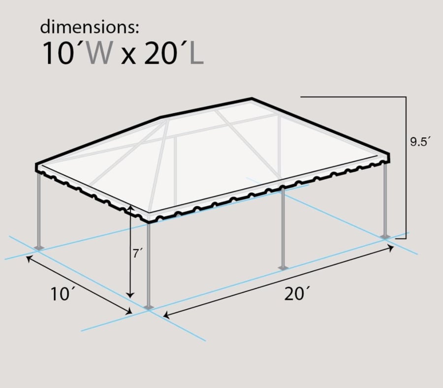 Our 10' x 20' Classic Frame tent is ideal for small backyard gatherings, graduation open houses, and service areas like bar stations, DJs, caterers, and buffet lines. It’s also a great add-on tent alongside a larger setup.